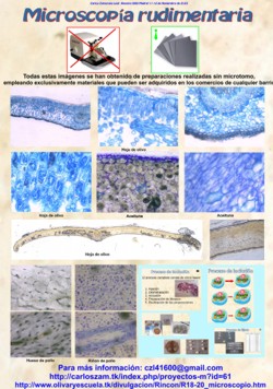 El planteamiento para esta edición fue combinar los materiales del proyecto "Microscopía rudimentaria" con los que presentaremos en la 24ª Feria de la Ciencia de Sevilla, que será "Enfermedades dol olivo al microscopio".
