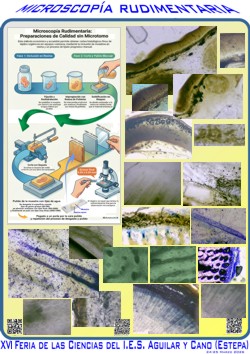 Este enlace nos llevará a la web correspondiente a la preparación de nuestra participación en la actividad en la Feria de la Ciencia de Sevilla y este otro a la del proyecto "Microscopía rudimentaria". En ellas podrá ver toda la información respecto a los juegos, preparaciones y técnicas seguidas.