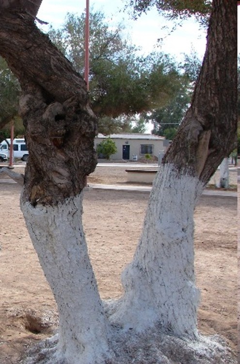![]() La cal al ser alcalina evita que ciertas plagas ataquen al árbol. |
