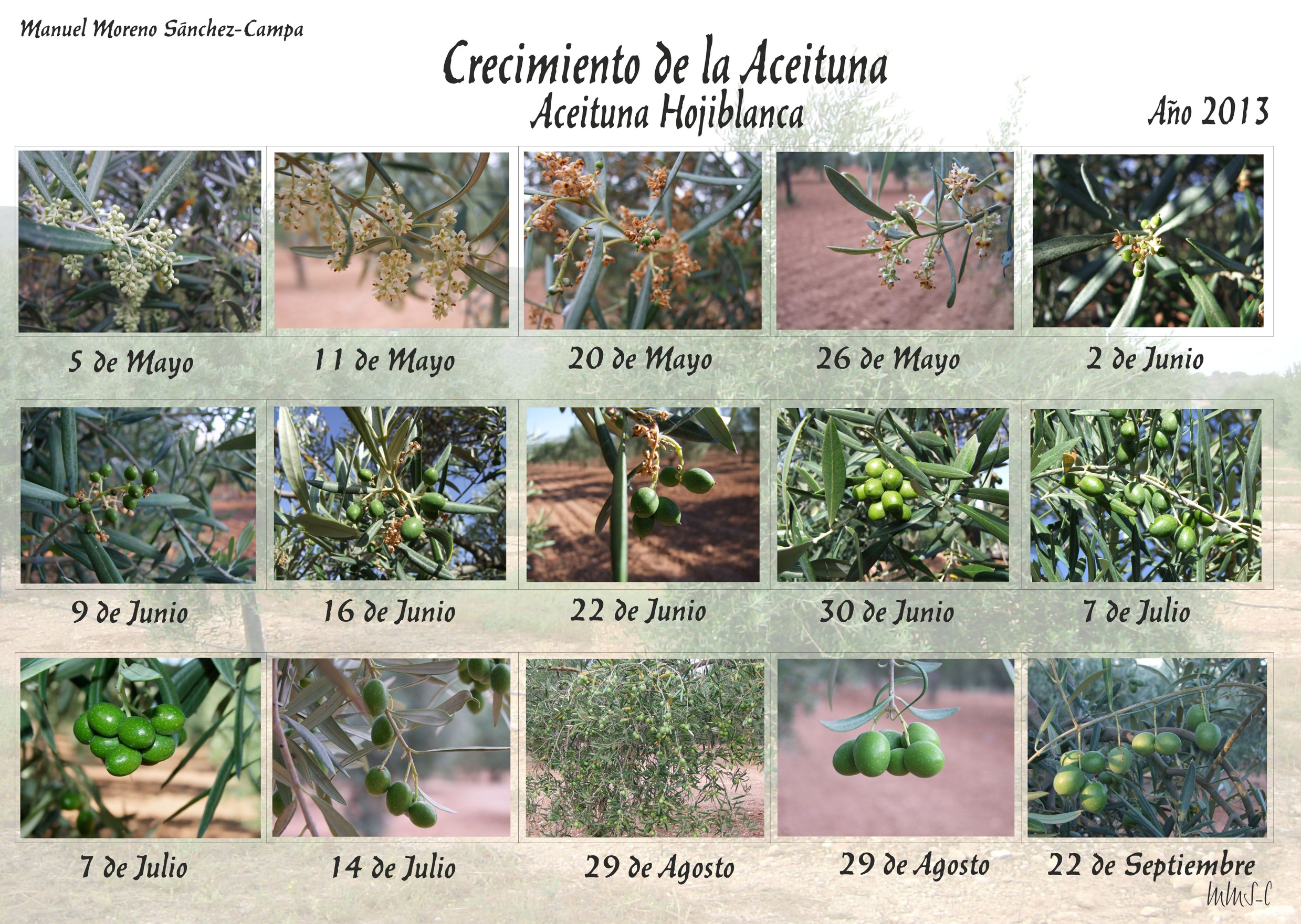 Floración y maduración de olivos de la variedad "Hojiblanca".