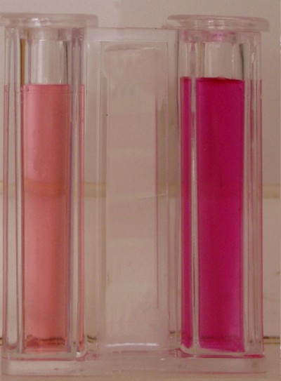 Aumento de pH, comprobado con rojo fenol, que se