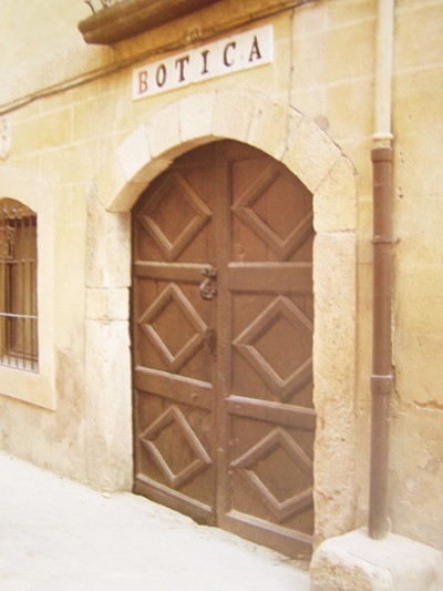 Peñaranda del Duero. Esta familia ha regido esta botica desde el siglo XVII. En los carteles pueden verse algunos detalles del interior. |