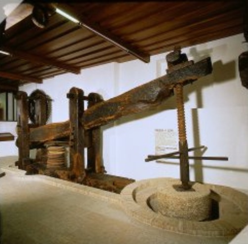 Esta parte del del stand se centra en el funcionamiento de una prensa de viga, modelo utilizado en los molinos aceiteros en el s XVII en Andalucía.