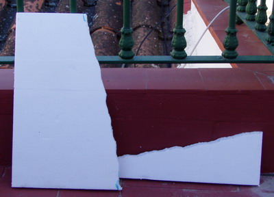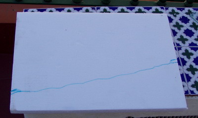 | Paso 1.- Marcar el poliexpan para rellenar la zona que en la maqueta ocuparán la gravilla y la arena.. |