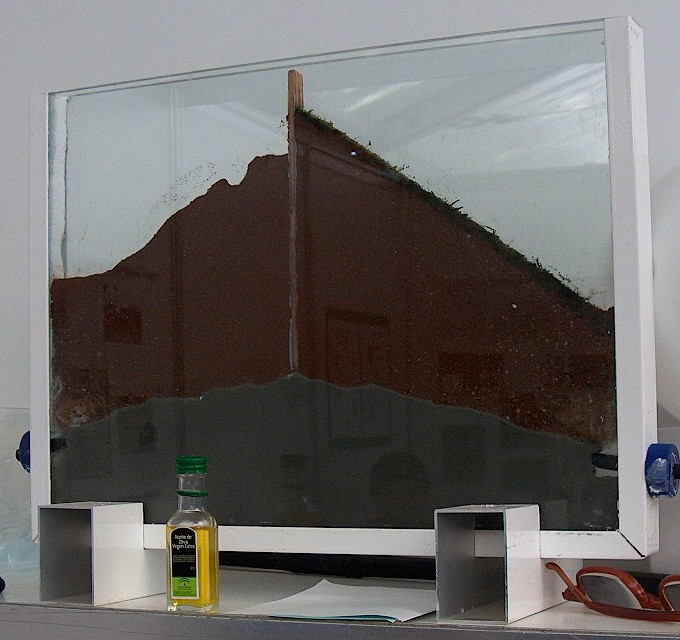 | Probando con arena seca sobre un modelo de cartulina. | ![]() |