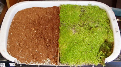 | Aspecto de la superficie tras plantar la cubierta de musgo y pequeñas hierbas. |