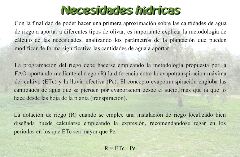 La imagen siguiente nos muestra las necesidades de riego de un olivar. Si pulsas sobre ella podrás leer el ártículo completo.
