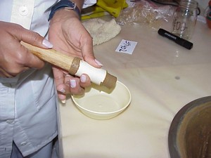 formas fundamentales: pH = - Log [H+] En la práctica se utilizan varias relaciones suelo-agua para la determinación del pH bien sea en peso ó en volumen. En muchos laboratorios se suele utilizar una relación suelo agua 1 : 2 peso/volumen sin embargo esta relación no es muy apropiada ya que dista mucho de la realidad que vive el sistema radicular de las plantas. El método de lectura, generalmente es el potenciométrico. El potenciómetro, como su nombre lo indica, mide una diferencia de potencial en milivoltios entre un electrodo de referencia, y otro electrodo de vidrio inmerso en la muestra. Generalmente se utiliza un electrodo combinado que lee directamente el pH. Determinación del pH en Suspensiones de Suelo Agua 1:2 V/V Se toman 30 ml de suelos en pasta