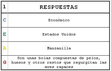 - La manera de formular la pregunta es la siguiente: en el juego se incluirán una serie de tarjetas, cada una con cuatro preguntas correspondientes a las cuatro secciones. La respuesta está en el dorso de cada tarjeta.