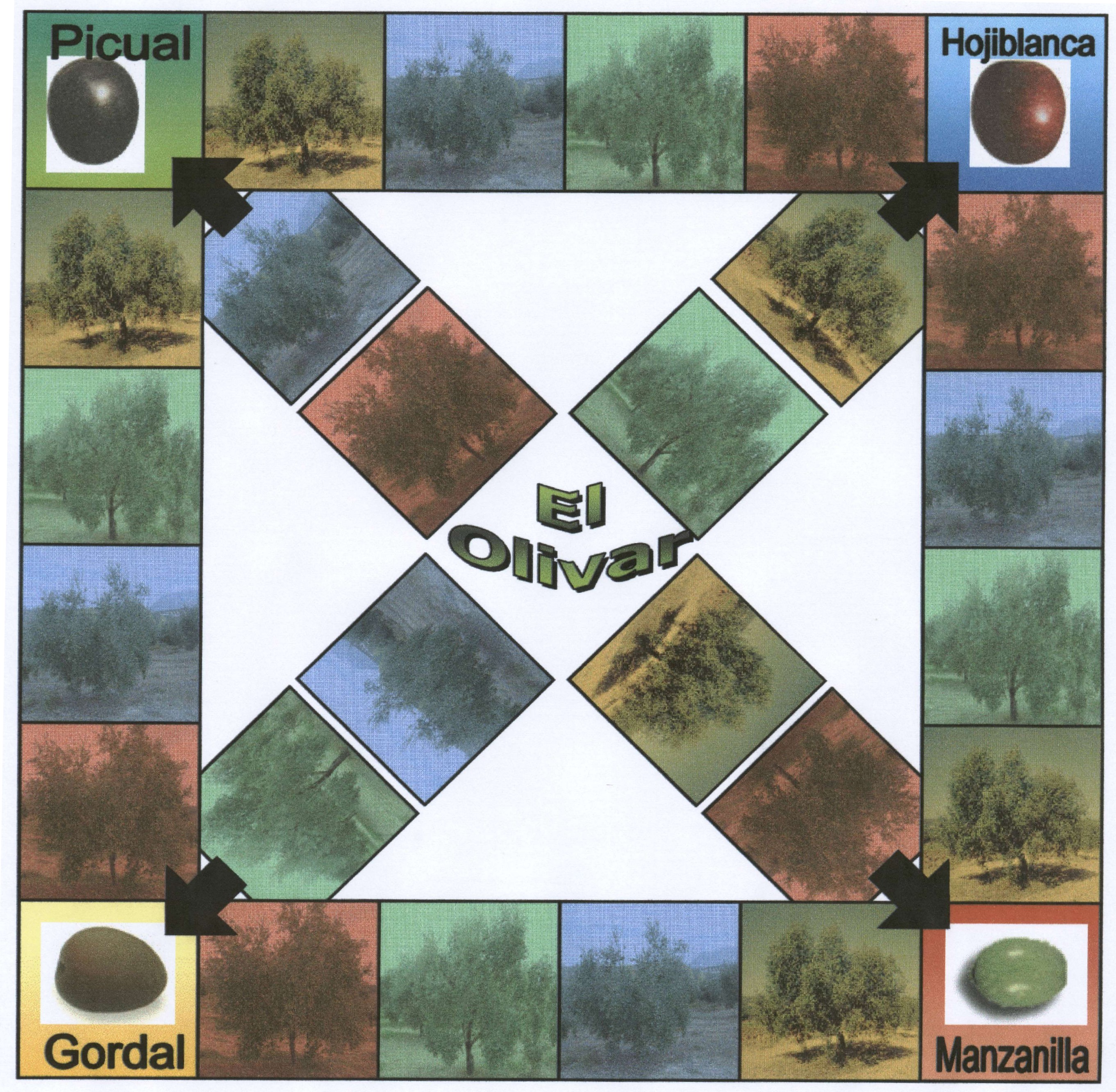 - Sustituimos los tradicionales quesitos del Trivial por los tipos de aceitunas más usuales: manzanilla, picual, gordal y hojiblanca.