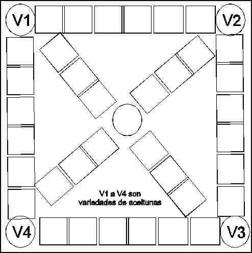 - El tablero se divide en cuatro secciones: modalidades de cultivo (C), estadística (E), tipos de aceitunas (A) y general (G). En cada una de estas secciones se harán preguntas específicas.