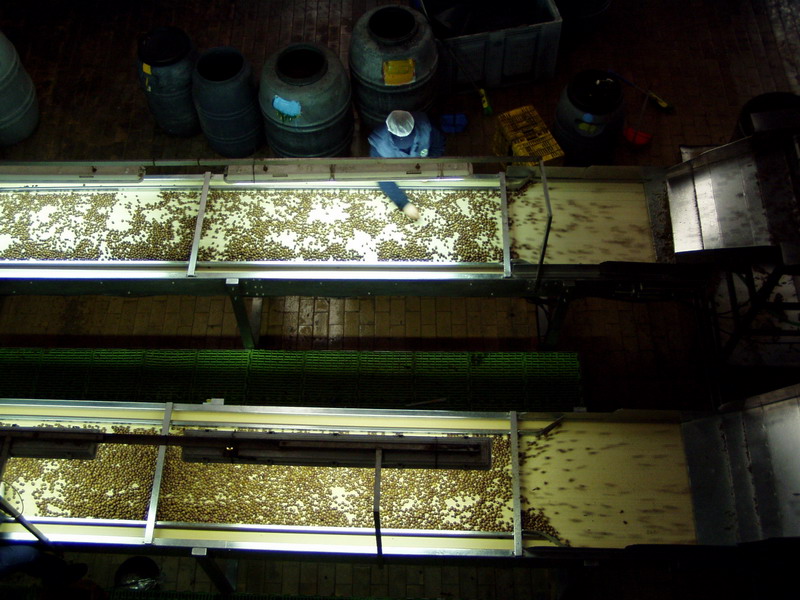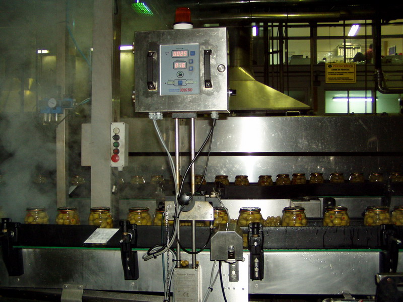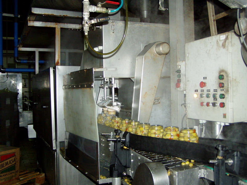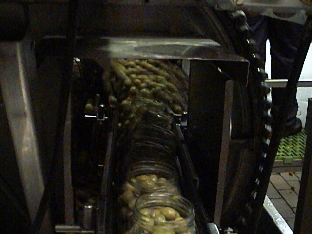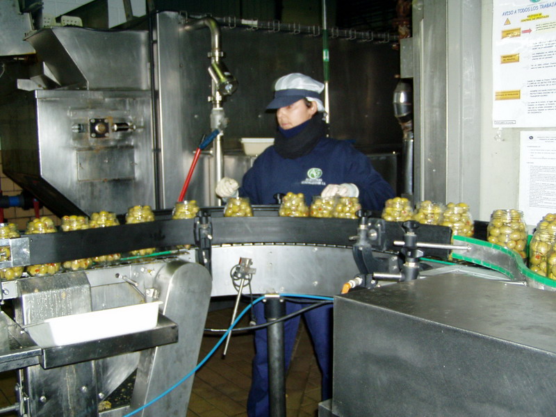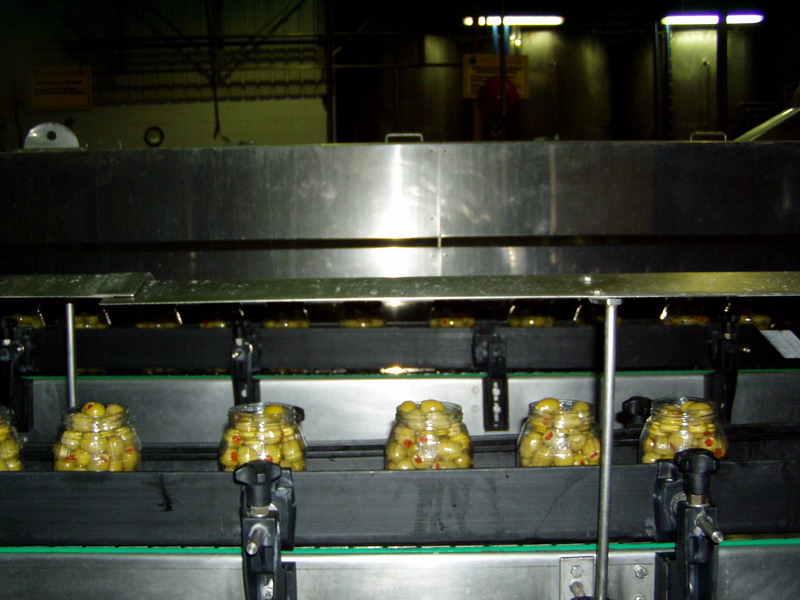 Envasado de aceitunas verdes en vidrio