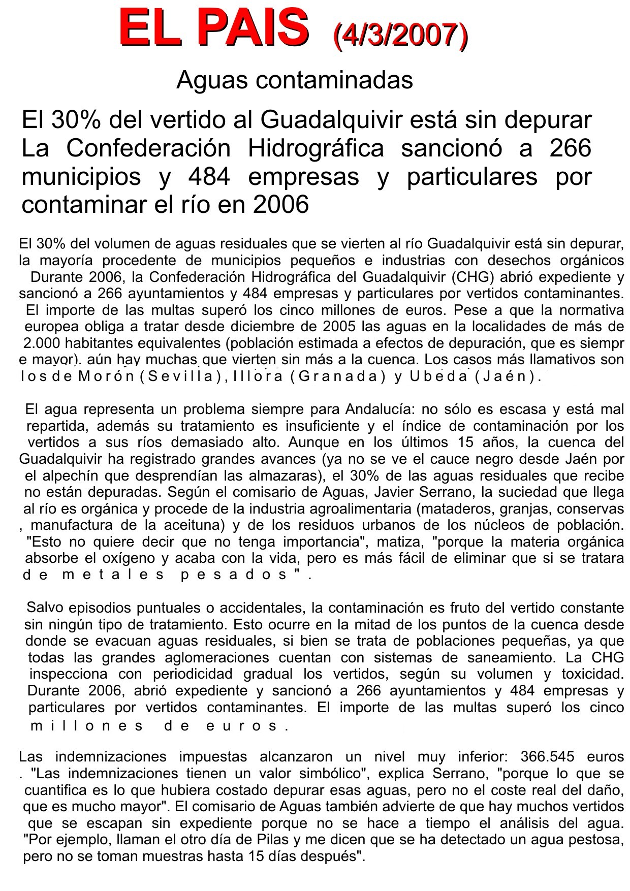 Río Guadaira: Foto EL PAIS 4/3/2007