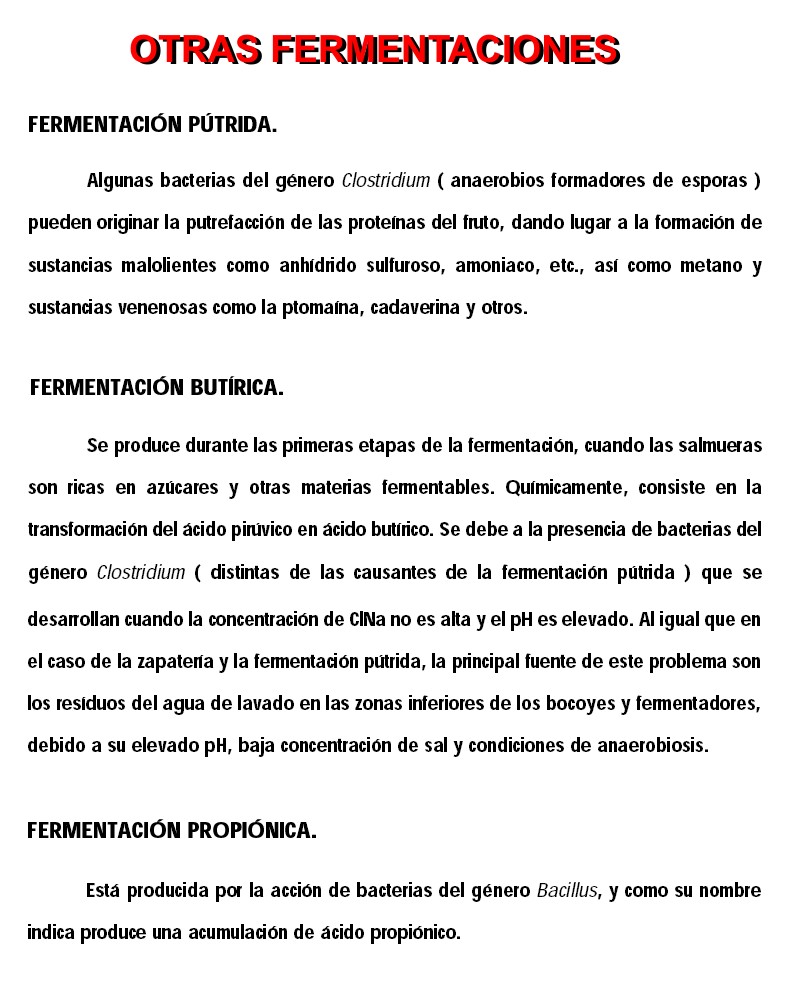 Entre las principales alteraciones debidas a fermentaciones indeseadas encontramos las siguientes: