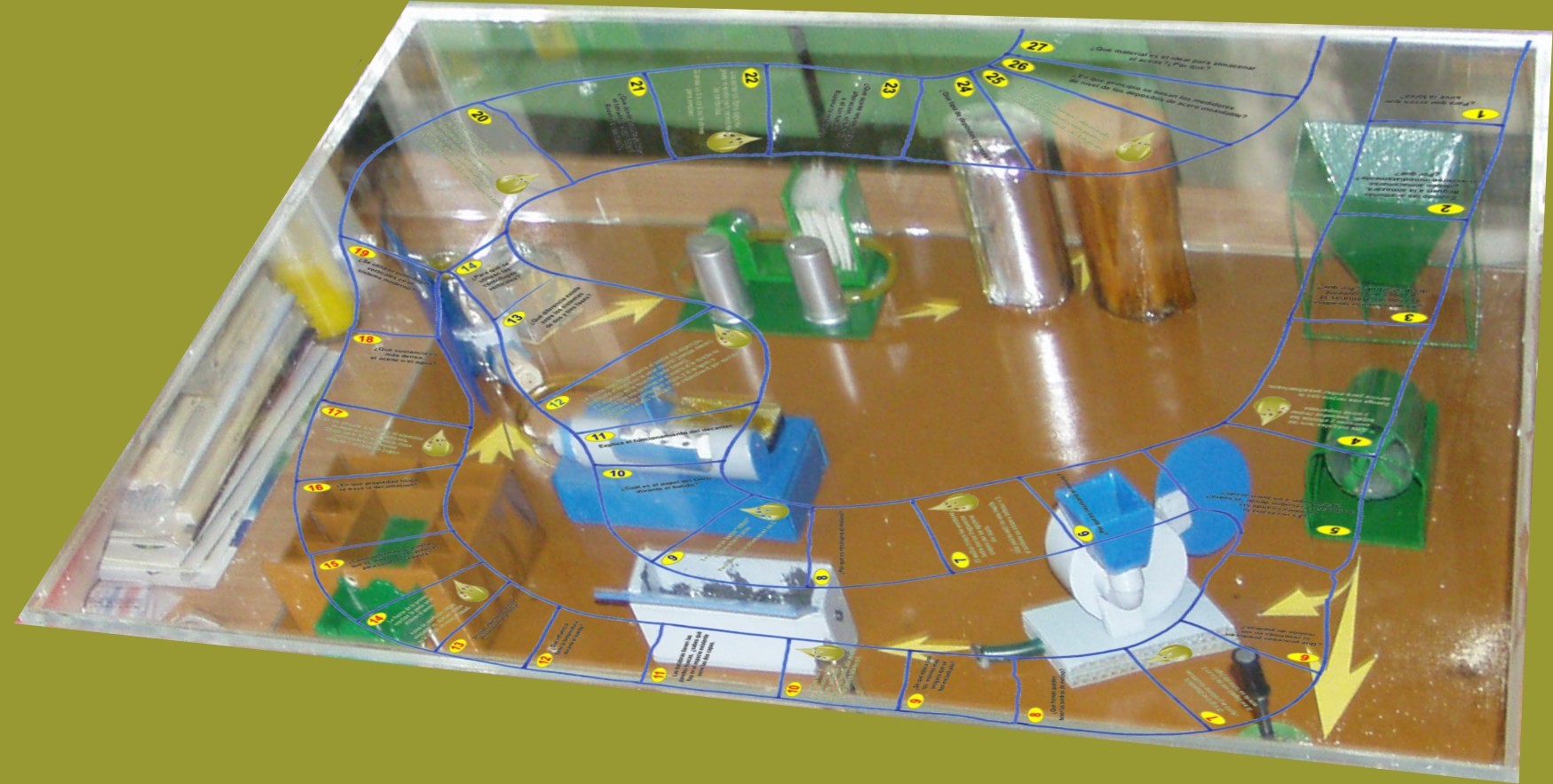 Se jugará sobre un tablero que discurre encima de una maqueta que representa una almazara tradicional y otra moderna.