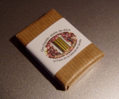 ____Después de fabricar el jabón deberemos cortarlo y envolverlo para que lo podamos regalar en el stand. Las siguientes imágenes nos muestran el diseño de la etiqueta que llevarán las pastillas y el aspecto final de las mismas.