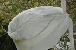 con ramas de olivo o con la ayuda de este bonsai que está en floración.