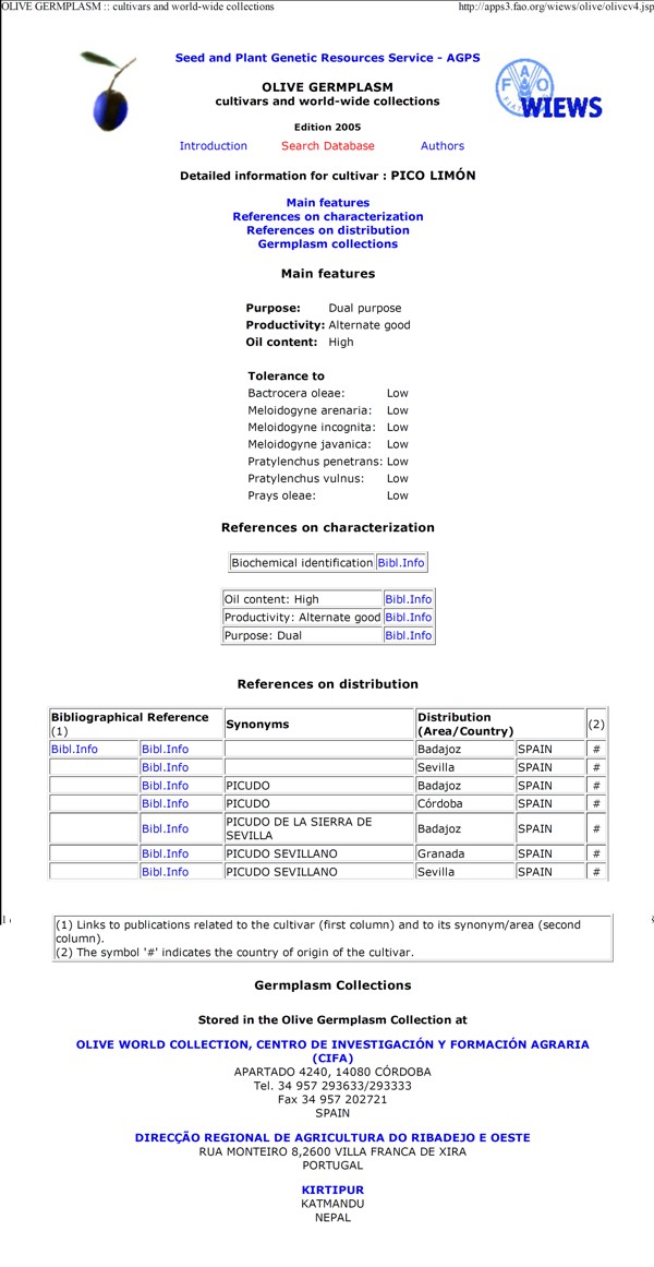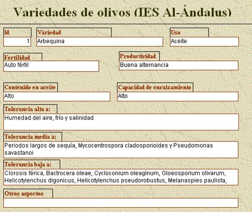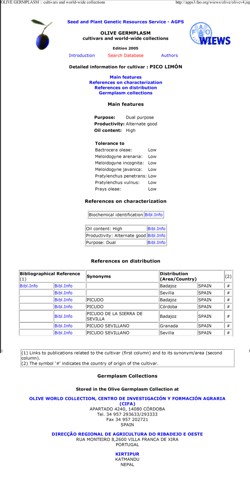 de olivos de diferentes variedades pulsando sobre el enlace. |
