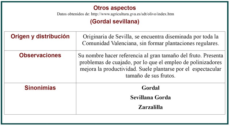 han sido obtenidas del libro Variedades de Olivo en España. |