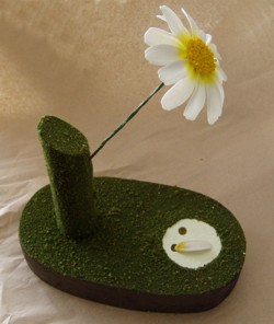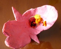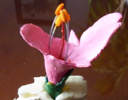 con una flor.