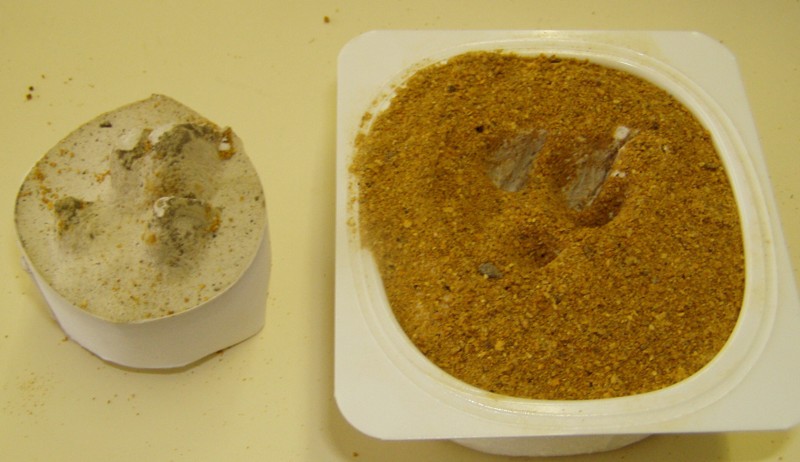 ____Ya hemos comenzado con la recogida de huellas y otras señales de la presencia de animales en el olivar, encontrándose los tabajos con egagrópilas y huellas bastante avanzados, además la actividad "Mural de un olivo con aves" se ha diseñado de forma que recoja los trinos de las aves más frecuentes en los olivares de nuestro entorno. En el stand podremos ofrecer a nuestros visitantes los materiales recolectados y realizaremos simulaciones en plastilina de las técnicas de obtención de huellas..