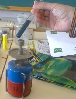mezclando a partes iguales Fehling A y B