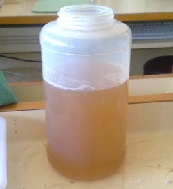 a un poco de salmuera en fermentación