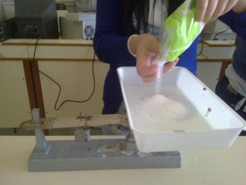 Ahora pesaremos la candidad de sal necesaria para