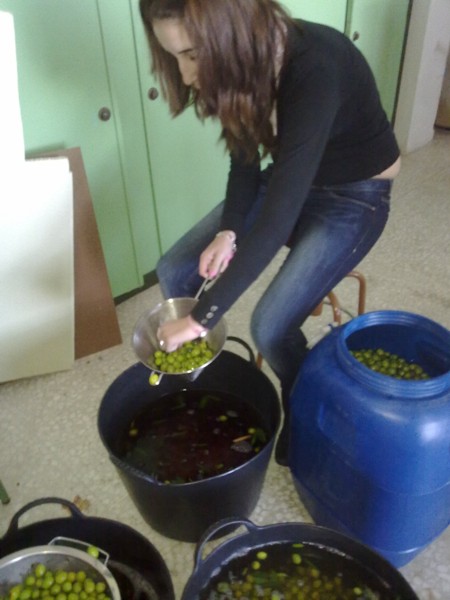 Una vez preparada la lejía la echaremos a las aceitunas. Cada