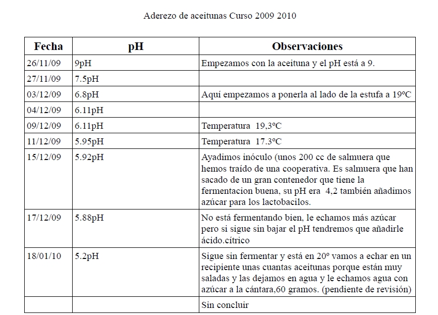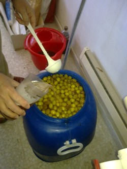 recipiente para probar las aceitunas, y aunque estaban en buen estado