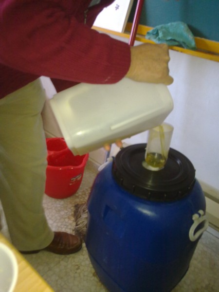 preparado sosa cáustica para echar las aceitunas en ella.