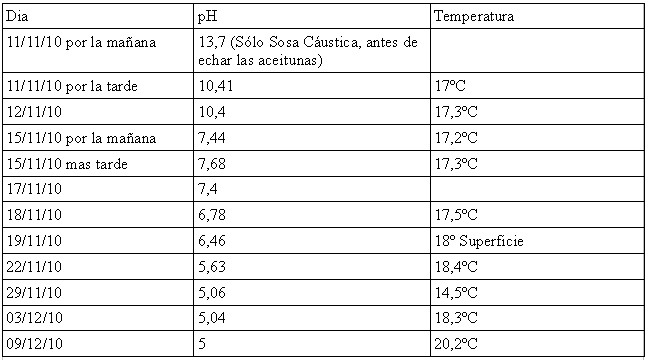 de sosa preparada, antes de echar las aceitunas, y la de la tarde a