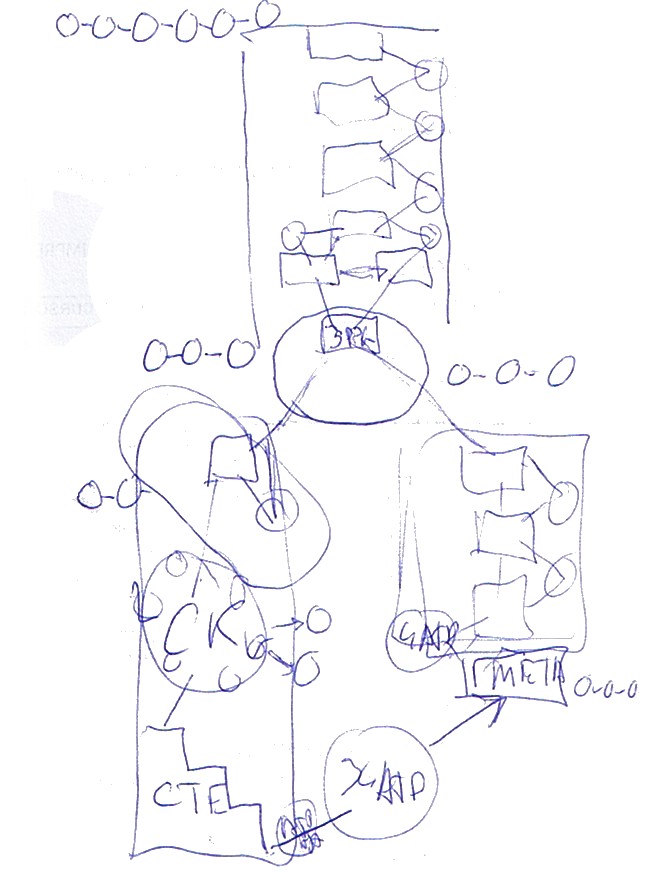 | Planteamiento inicial del tablero. Las cadenas o-o-o-... indican estructuras moleculares que se utilizarán como "pruebas físicas" |