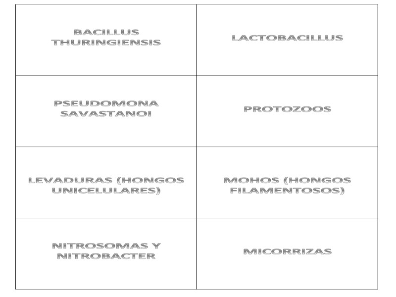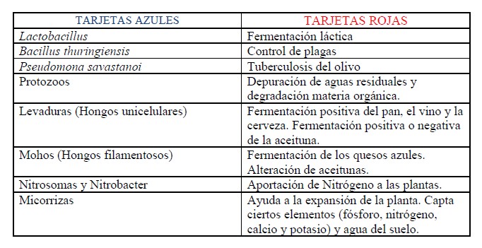 En un tipo de tarjetas (azules) podemos observar una serie de microorganismos,