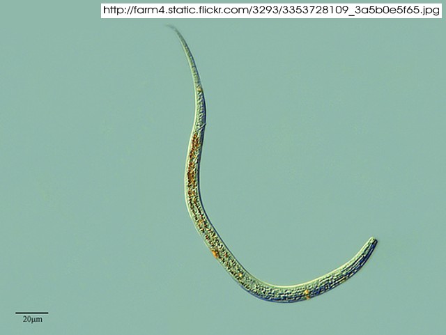 | En algunas ocasiones nos hemos encontrado con invertertebrados de pequeño tamaño como estos nematodos. | |