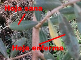 conductores por lo que los brotes y ramas del olivo se marchitan. Las hojas