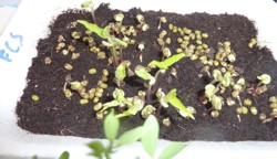 | Estamos repitiendo la experiencia empleando un sustrato más pobre (fibra de coco/turba 3:1, en lugar de turba pura) para ver si se observa alguna diferencia de crecimiento. Emplearemos semillas de soja verde además de las lentejas. | |