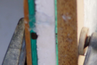 | Paso 5.- Rellenado con cemento-cola del espacio que queda entre las láminas de vidrio. |