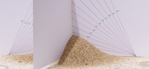 | Probando con arena seca sobre un modelo de cartulina. | ![]() |