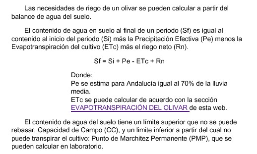 La imagen siguiente nos muestra las necesidades de riego de un olivar. Si pulsas sobre ella podrás leer el ártículo completo.