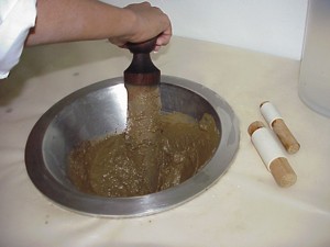 formas fundamentales: pH = - Log [H+] En la práctica se utilizan varias relaciones suelo-agua para la determinación del pH bien sea en peso ó en volumen. En muchos laboratorios se suele utilizar una relación suelo agua 1 : 2 peso/volumen sin embargo esta relación no es muy apropiada ya que dista mucho de la realidad que vive el sistema radicular de las plantas. El método de lectura, generalmente es el potenciométrico. El potenciómetro, como su nombre lo indica, mide una diferencia de potencial en milivoltios entre un electrodo de referencia, y otro electrodo de vidrio inmerso en la muestra. Generalmente se utiliza un electrodo combinado que lee directamente el pH. Determinación del pH en Suspensiones de Suelo Agua 1:2 V/V Se toman 30 ml de suelos en pasta