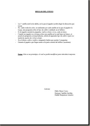 - Cuando un jugador se coloque sobre una casilla en la cual haya un banco, si acierta la pregunta correspondiente, subirá al siguiente tipo de cultivo (pero no tendrá la opción de volver a tirar).