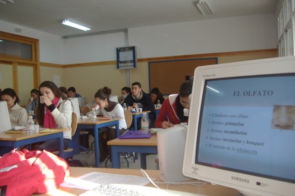 Imágenes de la cata realizada el 15 de enero de 2007. Fue dirigida por D. Victor Oliver, gerente de la Sociedad de Desarrollo "Desde Arahal". En ella l@s alumn@s de 4º y 1º de Bachillerato, y algun@s profesor@s, pudieron degustar aceitunas, aderezadas a la sevillana, de tres variedades diferentes: gordales, manzanillas y hojiblancas. |