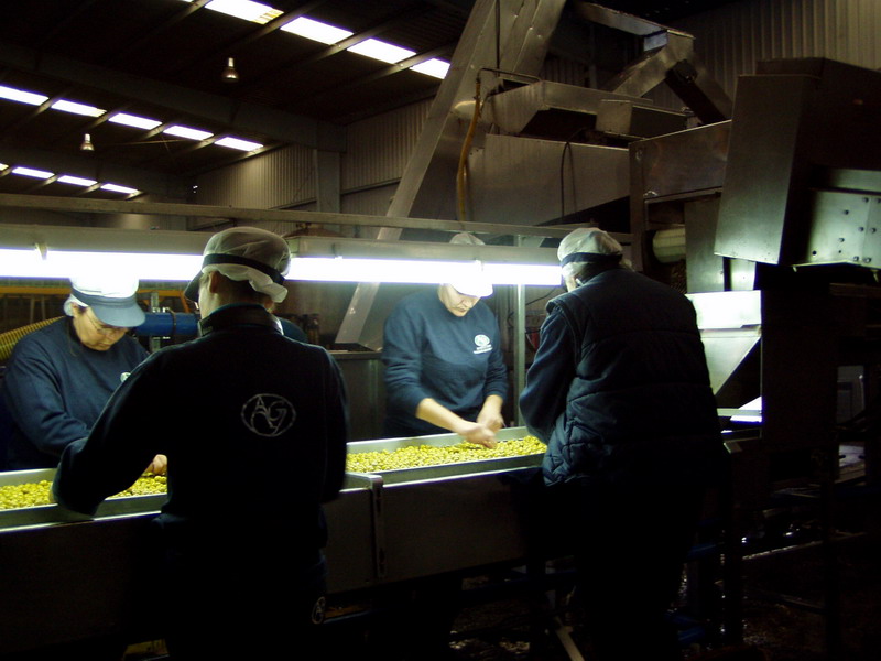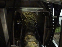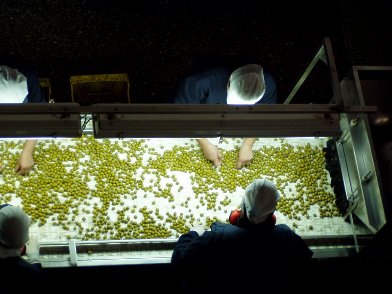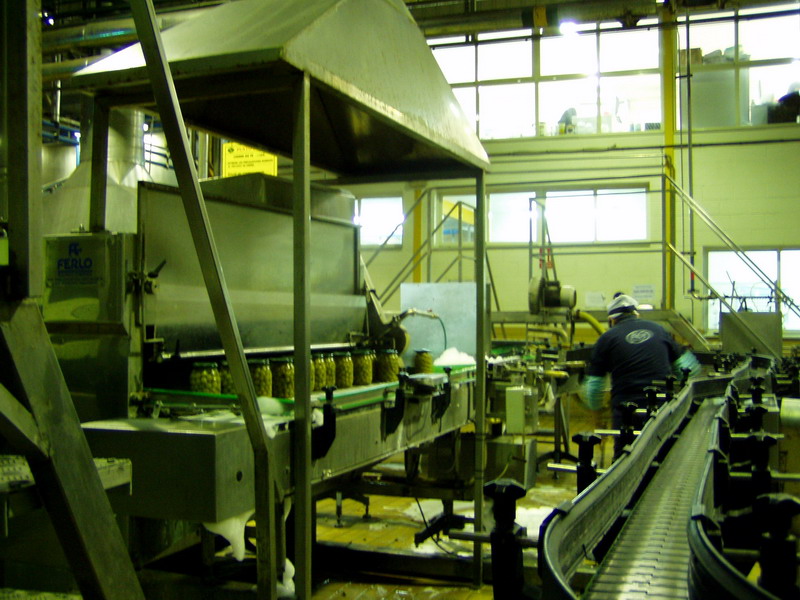 Envasado de aceitunas verdes en vidrio