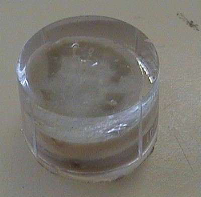 Primera prueba ____El acabado es aceptable pero hemos necesitado emplear más cantidad de catalizador que la que se aconseja en la documentación del producto y la polimerización ha sido bastante lenta (6 horas -24 para endurecimiento total-) ____En este caso el molde era de plástico, pero si es fino se altera y puede llegar a romperse. Decidimos emplear moldes de aluminio de los que vienen con flanes y otros postres. |