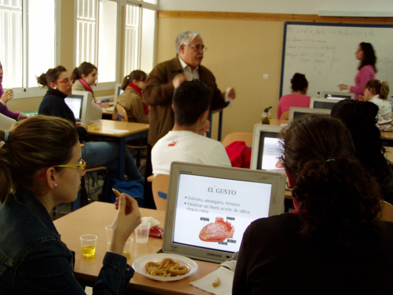 ____El día 18 de ferbrero se realizaron dos sesiones de cata de aceite de oliva y aceituna de mesa en las que participaron l@s alumn@s de 4º y 1º de Bachillerato que forman parte del proyecto de participación en la VI Feria de la Ciencia. Como en años anteriores la organización corrió a cargo de personal de la Fundación para el Fomento y Promoción de la Aceituna de Mesa. La cata fue dirigida por D. Victor Oliver, Gerente de la Sociedad de Desarrollo Desde Arahal.