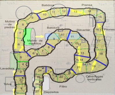 3 Sistema moderno (molino de martillos, batidora y decanter).