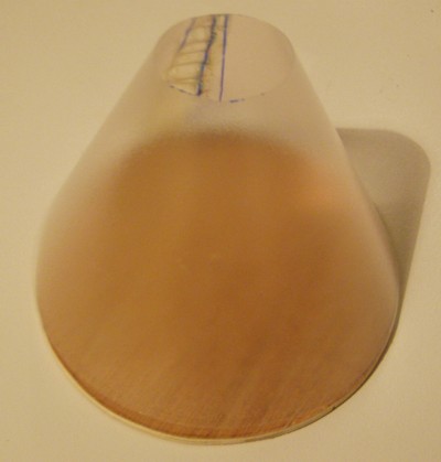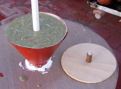 La idea era rellenar desde la base pequeña y cerrar la parte superior para centrar bien el eje. |