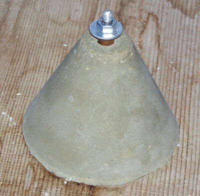 En esta base atornillamos el eje en el que previamente habíamos introducido en el eje un taco de plástico. Sobre el eje fijamos unos anclajes metálicos que quedarán incluidos en el mortero. |