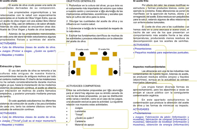 Pulsando sobre las imágenes de los trípticos podrá ampliarlas y ver un resumen del contenido del stand.